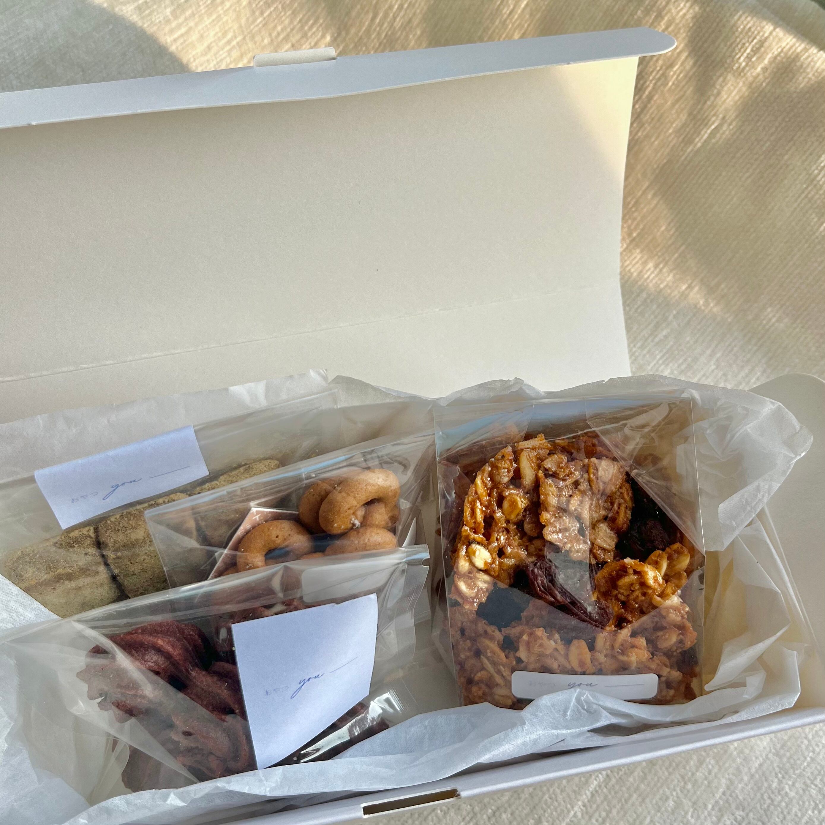 大豆、ごま、アーモンドを使っていますので、アレルギーの方はご注意ください